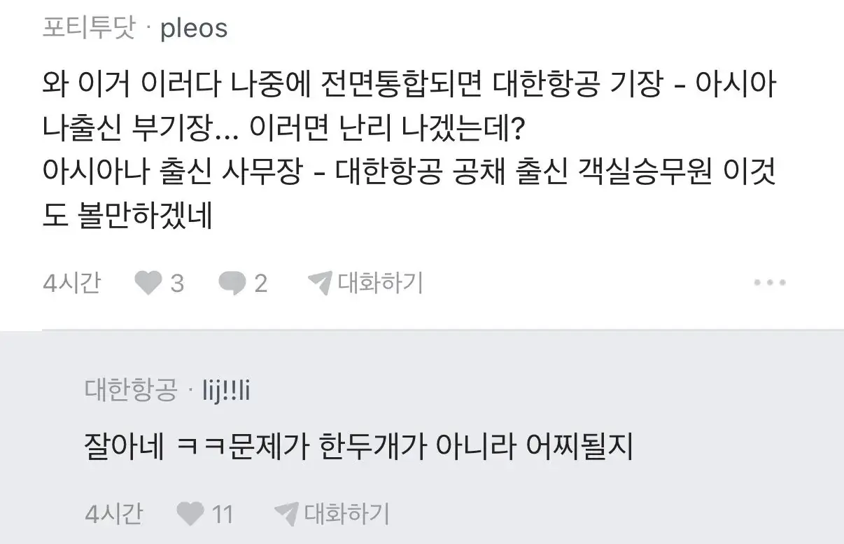 대한항공 아시아나 합병 직원간 기싸움 근황 ㄷㄷㄷ