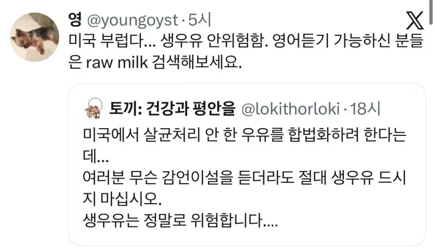 살균처리 안한 우유 합법화하려는 미국