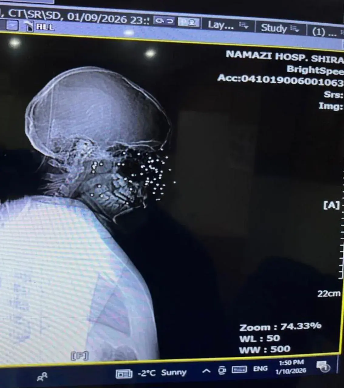 산탄총을 얼굴에 맞은 이란 시위 여성 엑스레이 사진