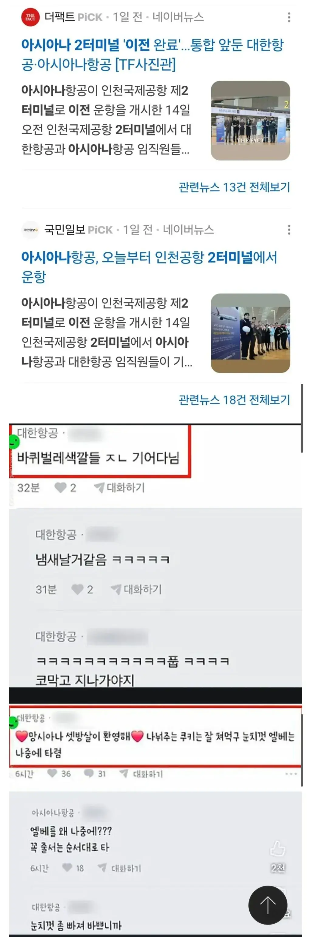 대한항공 아시아나 합병 직원간 기싸움 근황 ㄷㄷㄷ