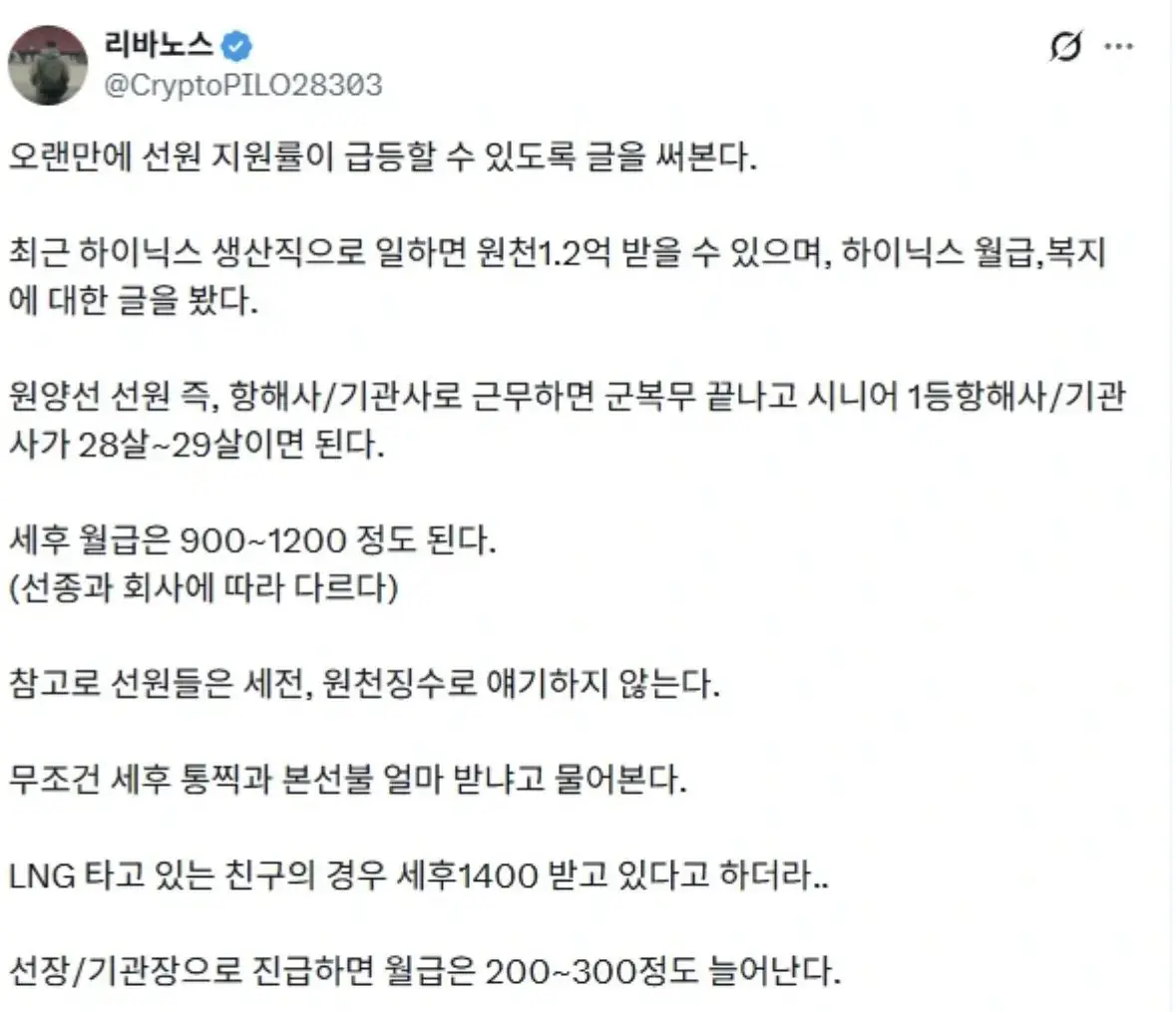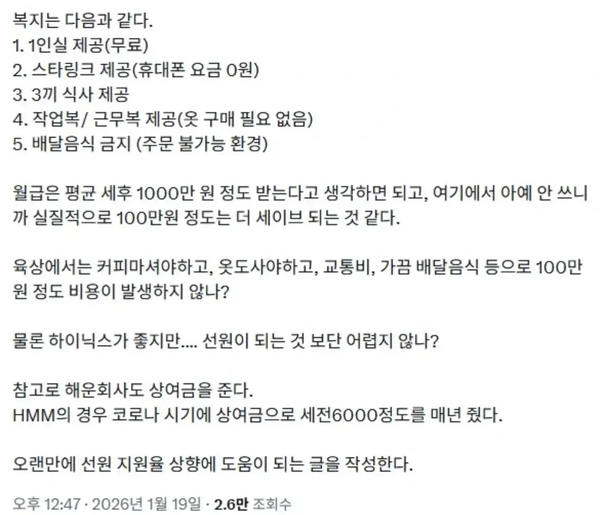 적성만 맞으면 원양선 선원 강력 추천하는 이유