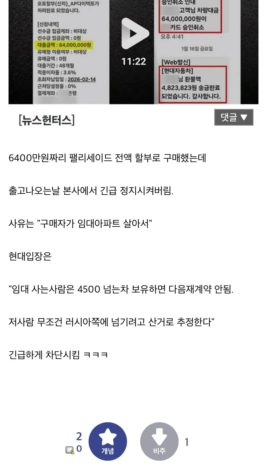 임대아파트 산다고 신차 출고정지 시킨 현대ㄷㄷㄷ