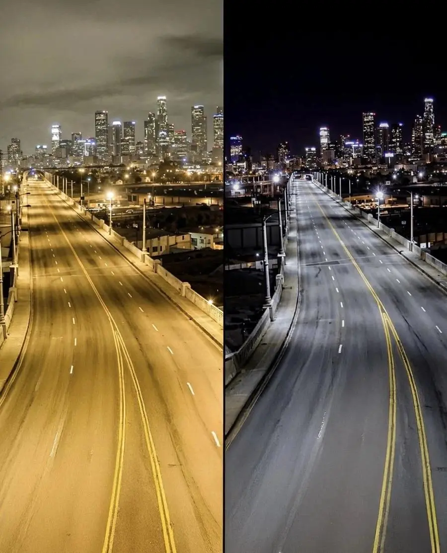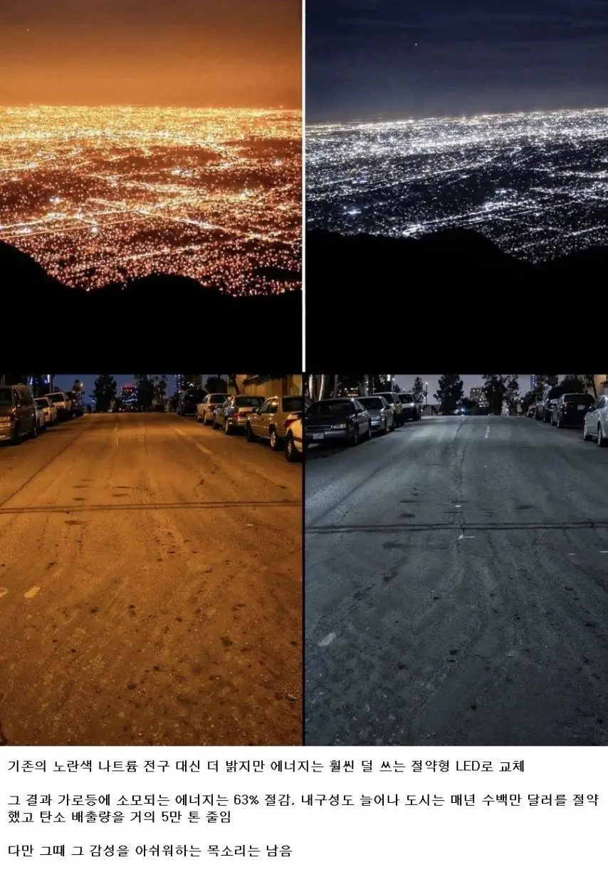 가로등 14만개를 LED로 교체한 LA 풍경 전후.