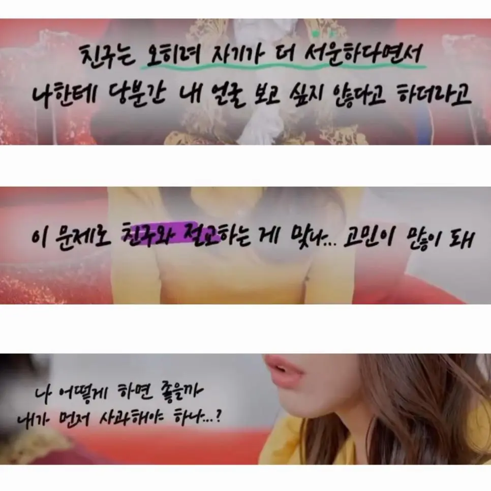 요약 쓰니 엄마 돌아가심, 외동딸이라 더 힘들거 같다며 절친이 연차써가며 장례 3일 내내 같이 있어줌 한달 뒤 남친 생겼다고 함 누구냐고 하니까 쓰니 엄마 장례식장에 조문 온 쓰니 회사 사람하고 사랑에 빠졌다고 함 기분 나빠서 절교 할지 화내고 싸웠는데 사과해야할지 고민이라는 내용