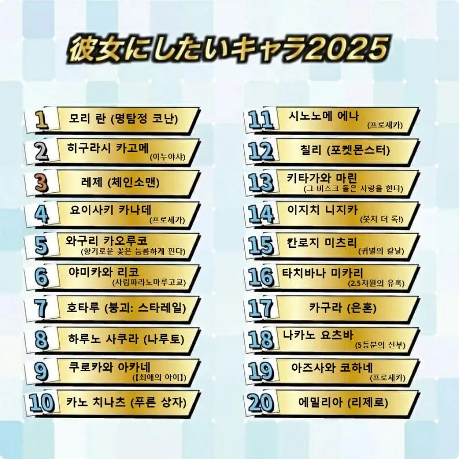 일본인 선정 여친 삼고 싶은 히로인 순위