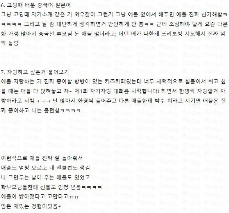 키즈 까페 사장이 제발 그만두지 말라고 붙잡았다는 알바