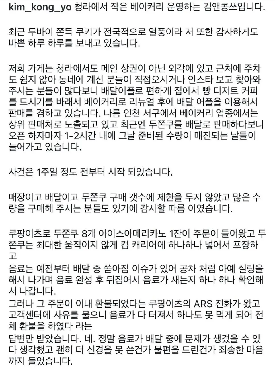 인천에서도 발생한 두쫀쿠 쿠팡이츠 환불 진상