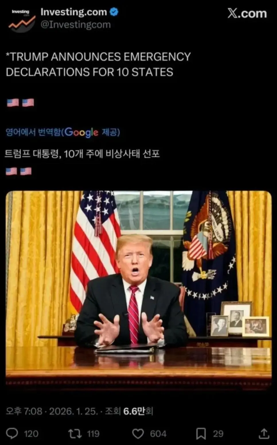 미국 트럼프 대통령, 10개 주에 비상사태 선포