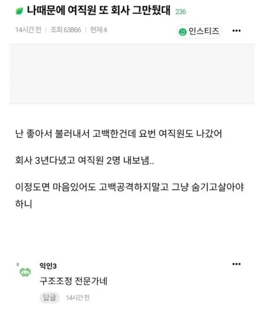 나 때문에 여직원 또 회사 그만뒀대