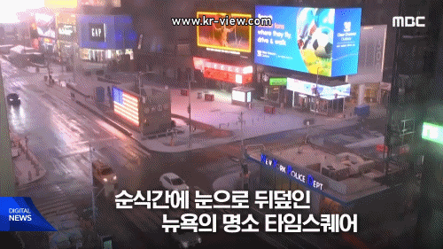 순식간에 눈으로 뒤덮인 뉴욕의 명소 타임스퀘어.