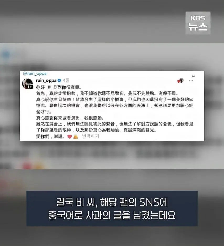 콘서트중 팬 지적한 비 결국 사과
