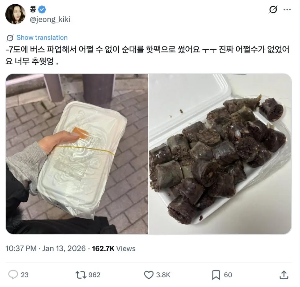 -7도인데 버스 파업해서 가성비 핫팩 샀어요