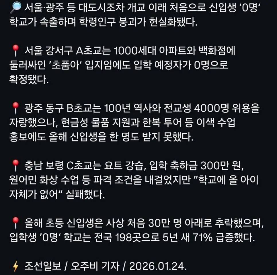 서울 올해 A초등학교 신입생 0명