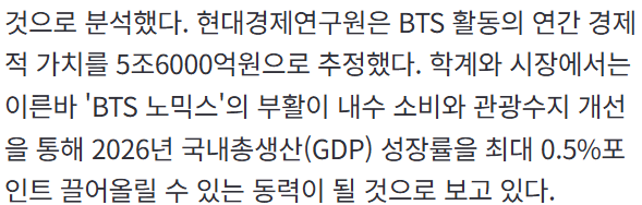 올해 BTS 공연으로 인한 한국 GDP 전망 예측 ㄷㄷㄷㄷ