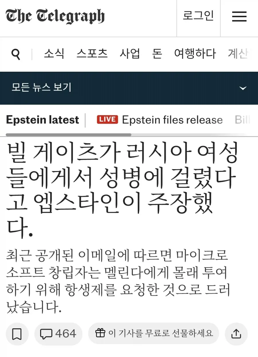엡스타인 문서에서 13년도에 빌 게이츠가 러시아 소녀들이랑 하다가 성병 걸렸다는 내용이 나오는데