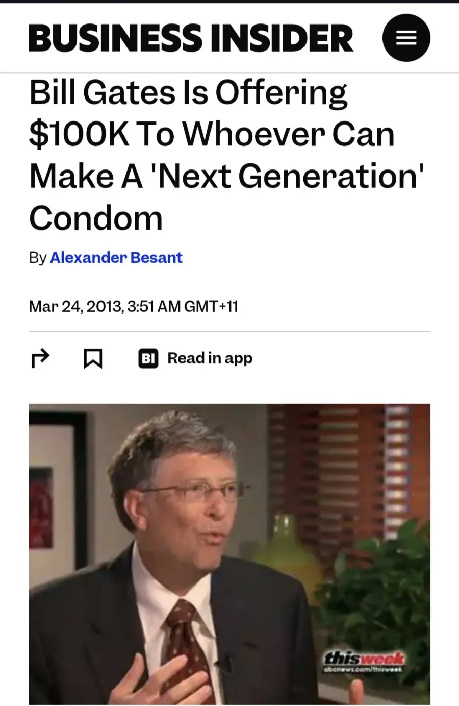 같은 년도에 빌게이츠가 차세대 콘돔을 만들 수 있는 사람에게 10만 달러 준다는 공고를 올림 이거 설마...