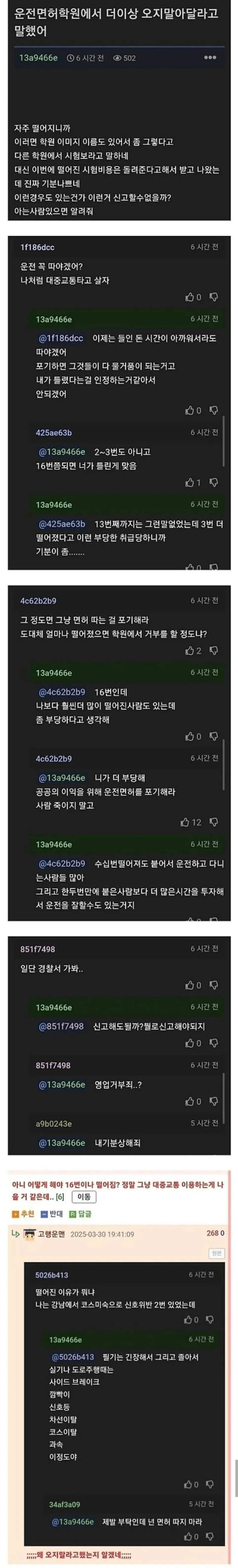 운전 면허 학원에서 더 이상 오지 말라고 통보 받은 사람