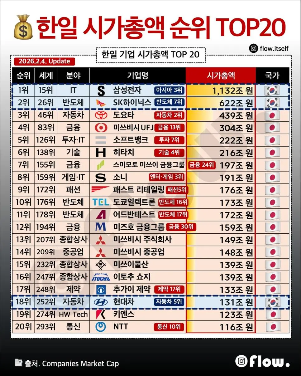 한일 기업 시가총액 TOP 20