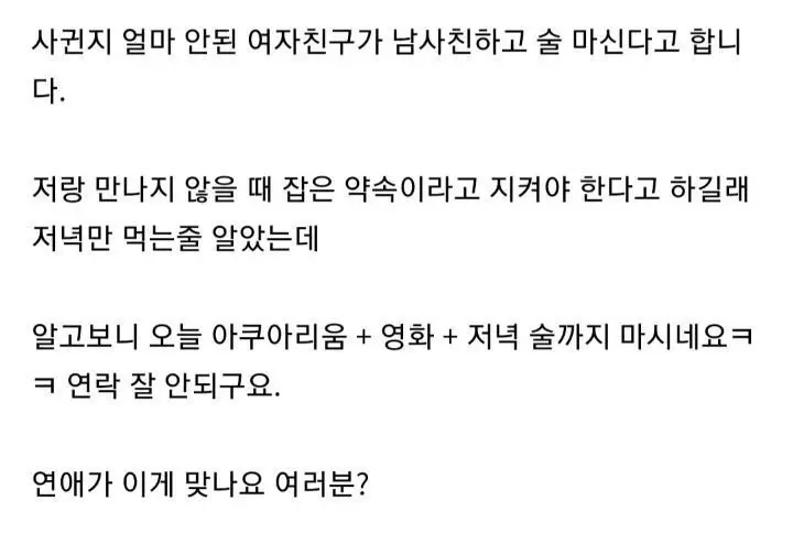여친이 남사친이랑 술마신다는데..