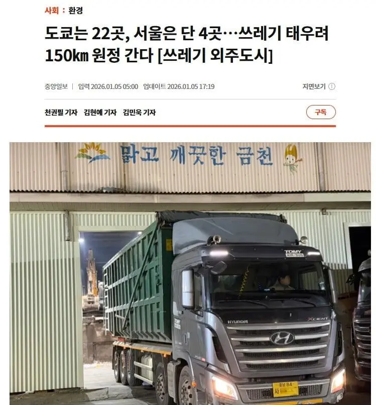 도쿄는 22곳 쓰레기 소각장 운영중 기술력도 좋아서 생활지역 근처에 있어도 환경, 건강문제 발생안함 서울은 현실적으로 자체적으로 각 구마다 소각장 운영해서 자체처리하는게 좋다고 전문가의견