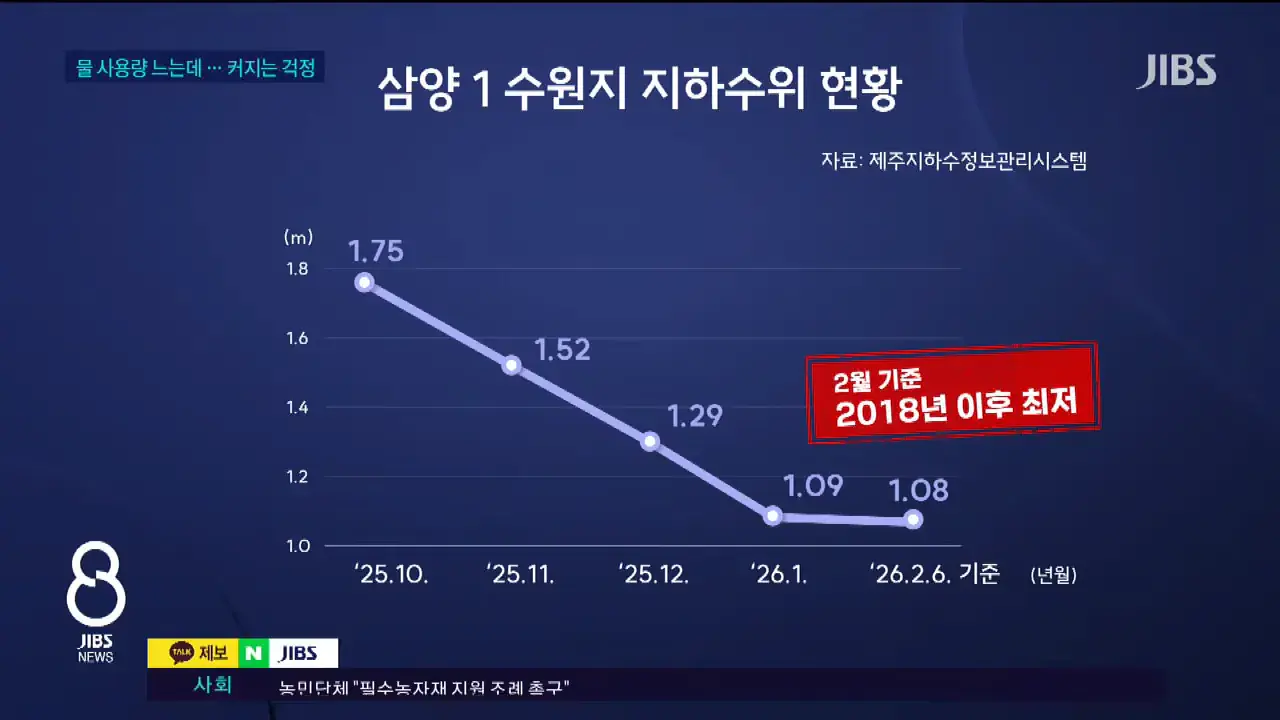 제주자치도는 현재 관계 부서들과 가뭄과 지하수위 등에 대한 모니터링을 강화하고 있다며 민간 차원의 물 절약도 당부했습니다