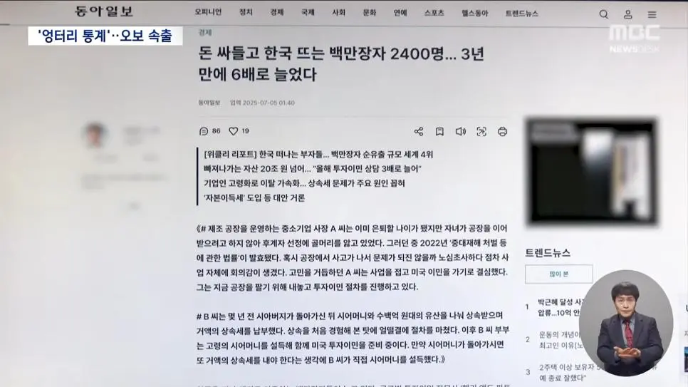 "부자 2400명 한국 떠났다" 받아쓴 언론, 너도나도 기사 삭제