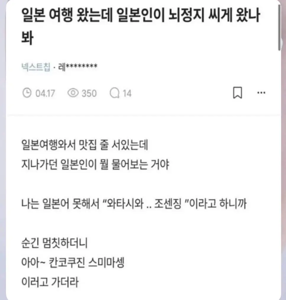 한국인한테 말 걸었다 뇌정지 씨게온 일본인