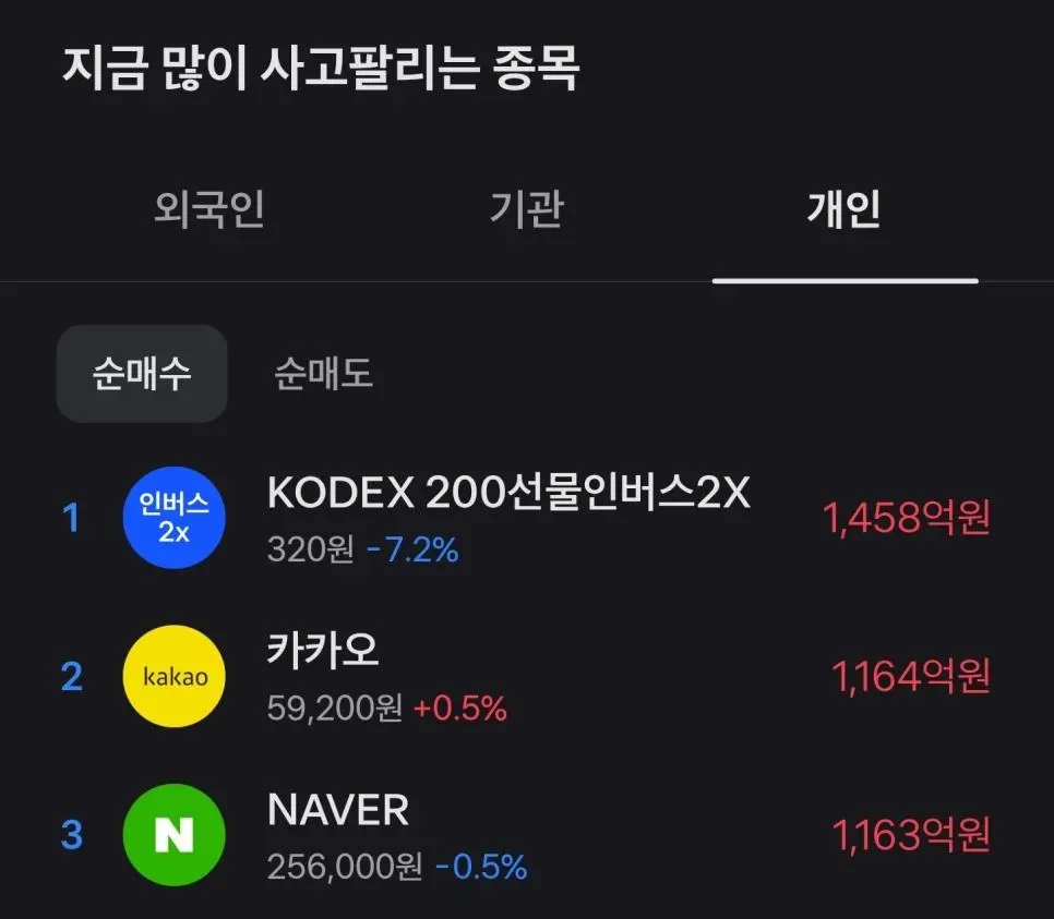 오늘자 개미 투자자 순매수 상위 종목