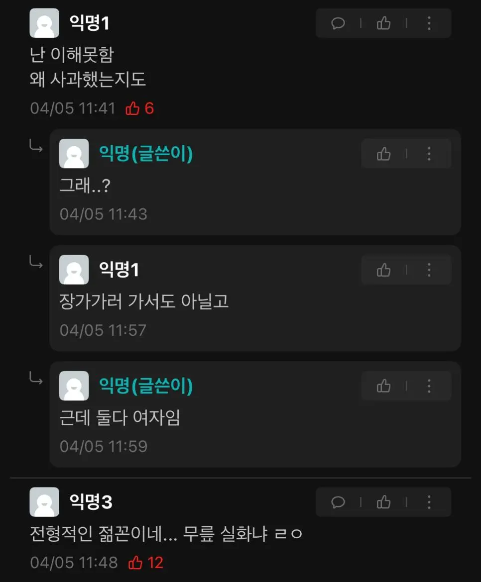 1. 이번주에 첫출근한 신입사원이 회식자리에 감 2. 아빠다리로 앉았는데 팀장한테 기본적인 예의가 없다며 지적당함 3. 그래서 사과하고 끝까지 무릎꿇고 앉음 + 글쓴이 25, 팀장은 30 중후반