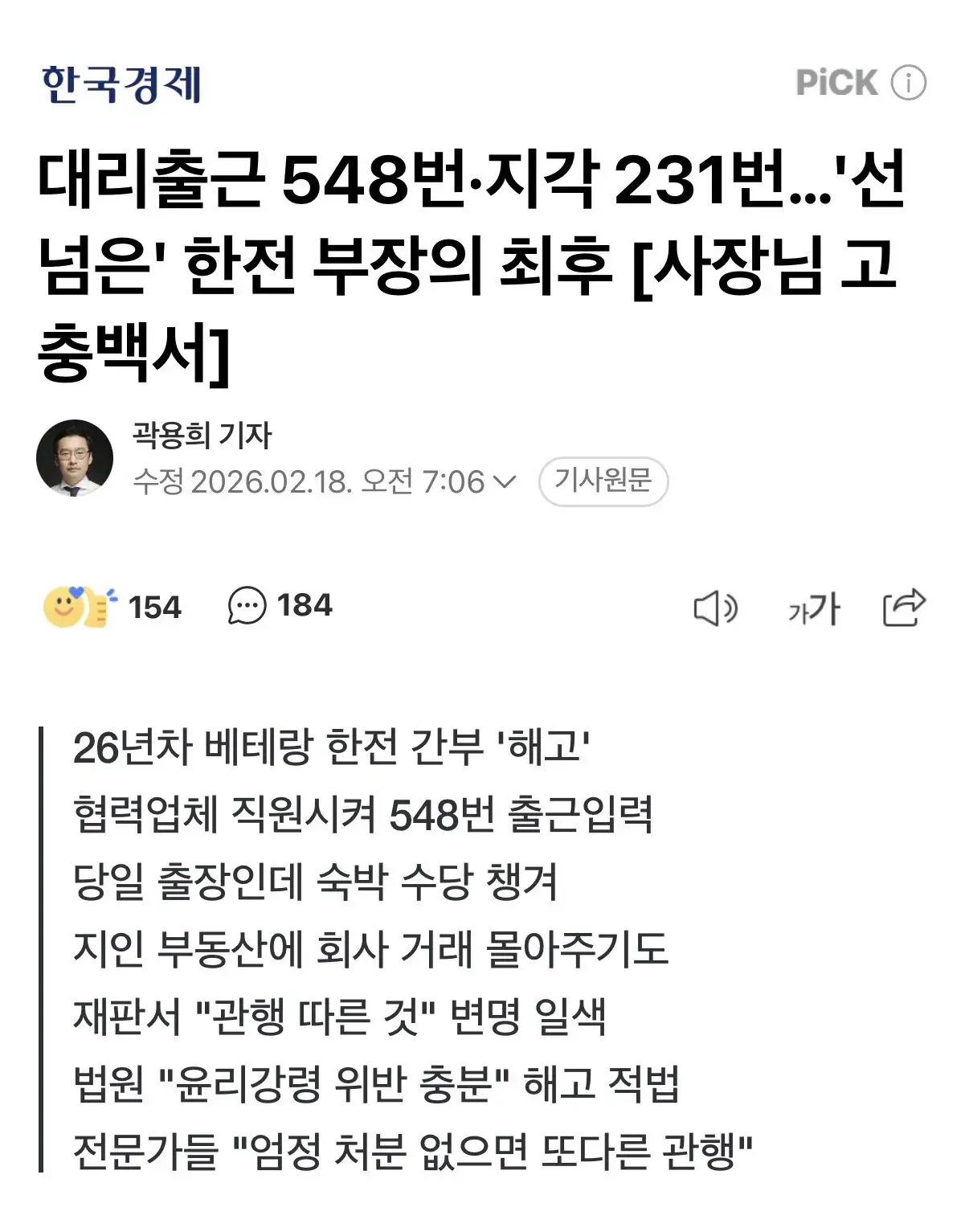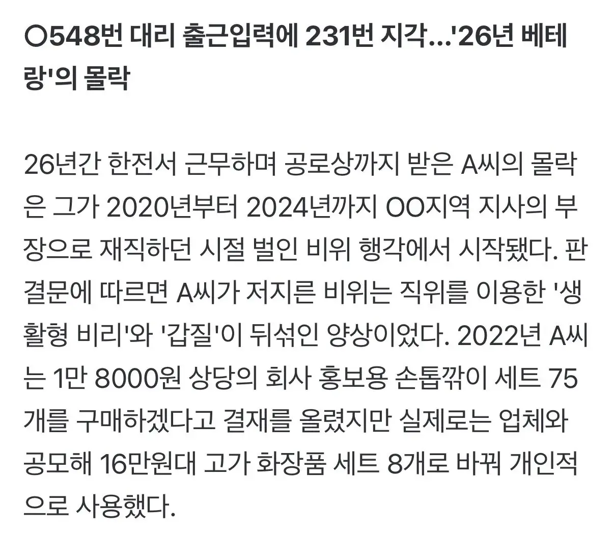 26년차 베테랑 한전 부장이 해고된 이유 ㄷ