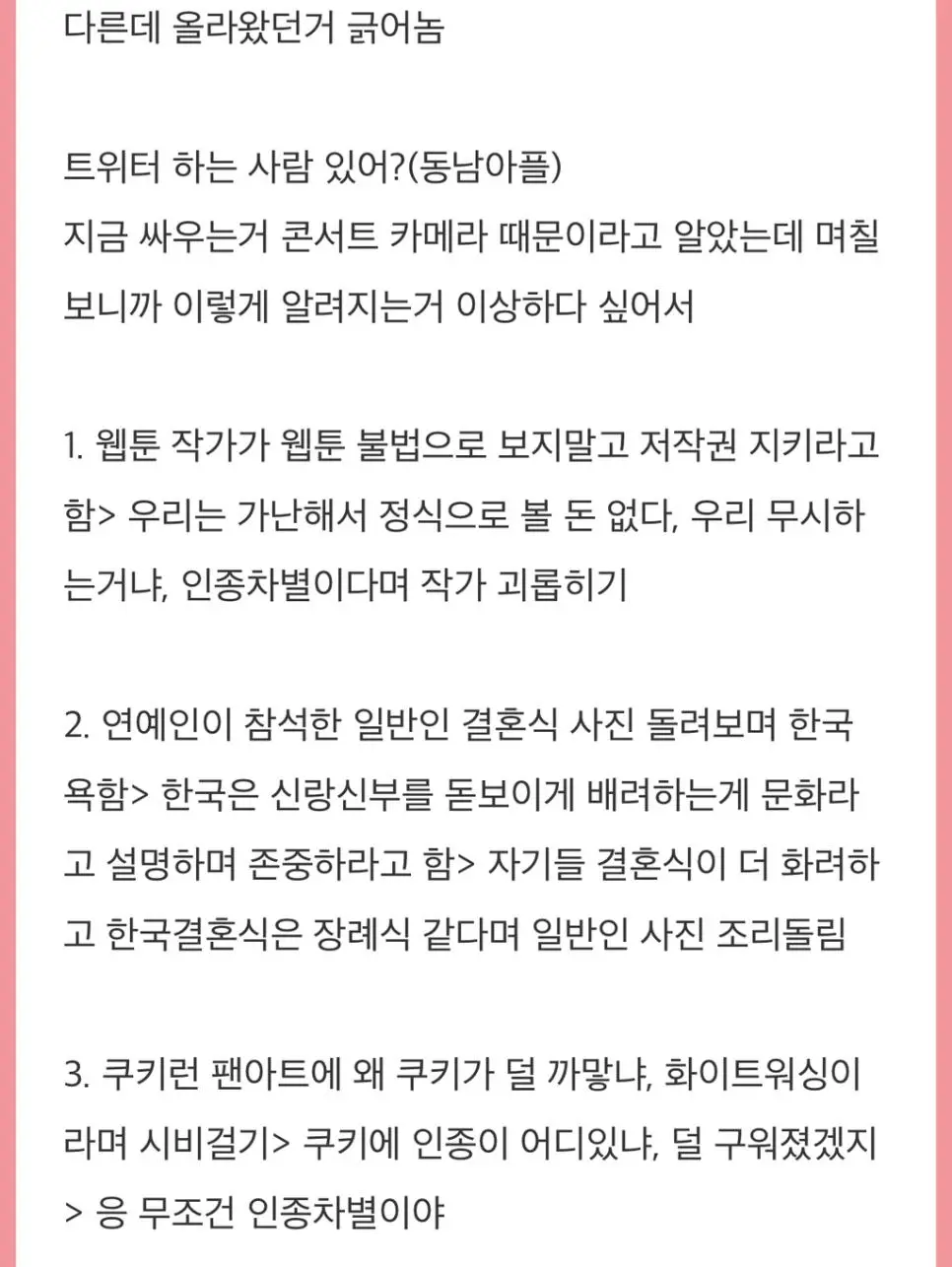 동남아 혐한발작 정리