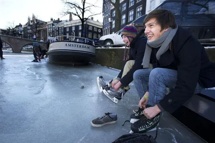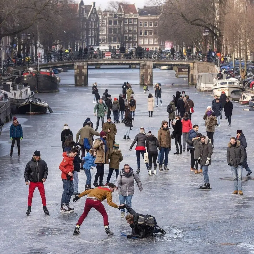겨울 되면 그 운하가 얼어버리니 스케이팅