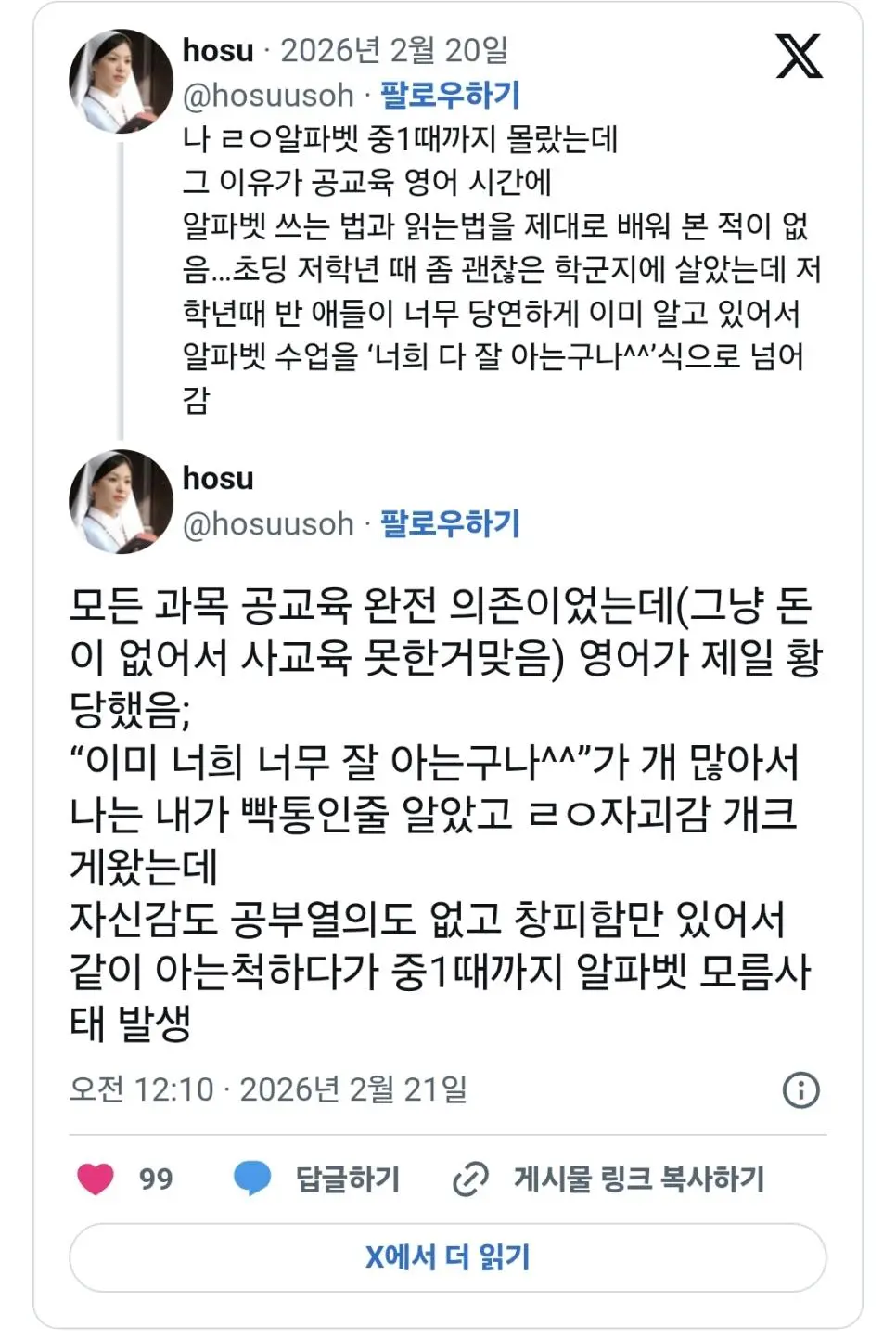 공교육이 케어 안 해주면 모르는 부분이 있는 애들은 분명히 생긴다