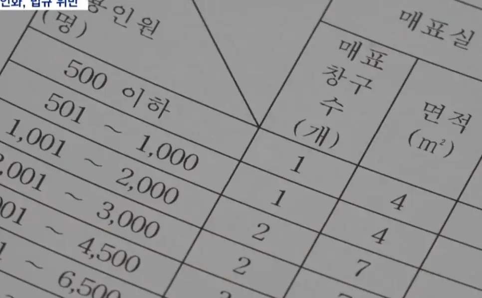 규모에 따라서 반드시 매표소가 있어야 하는 규정