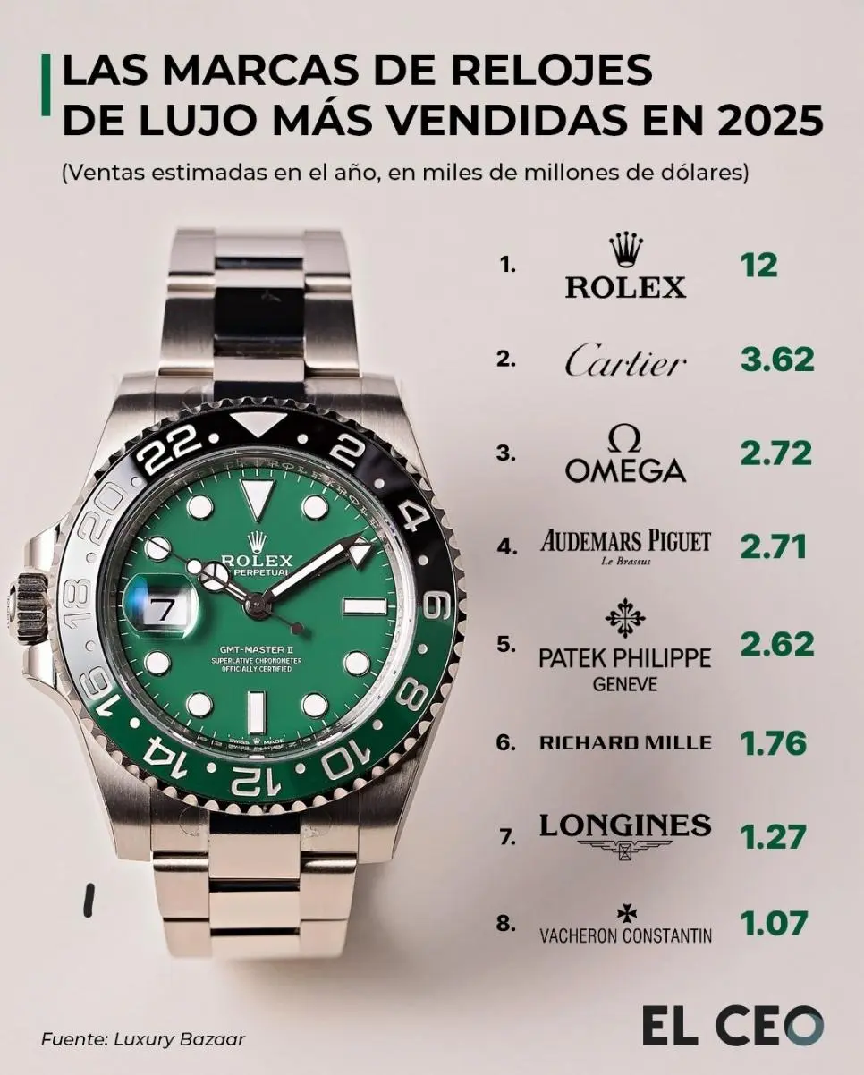 2025년 전세계에서 가장 많이 팔린 명품 시계 브랜드 TOP8