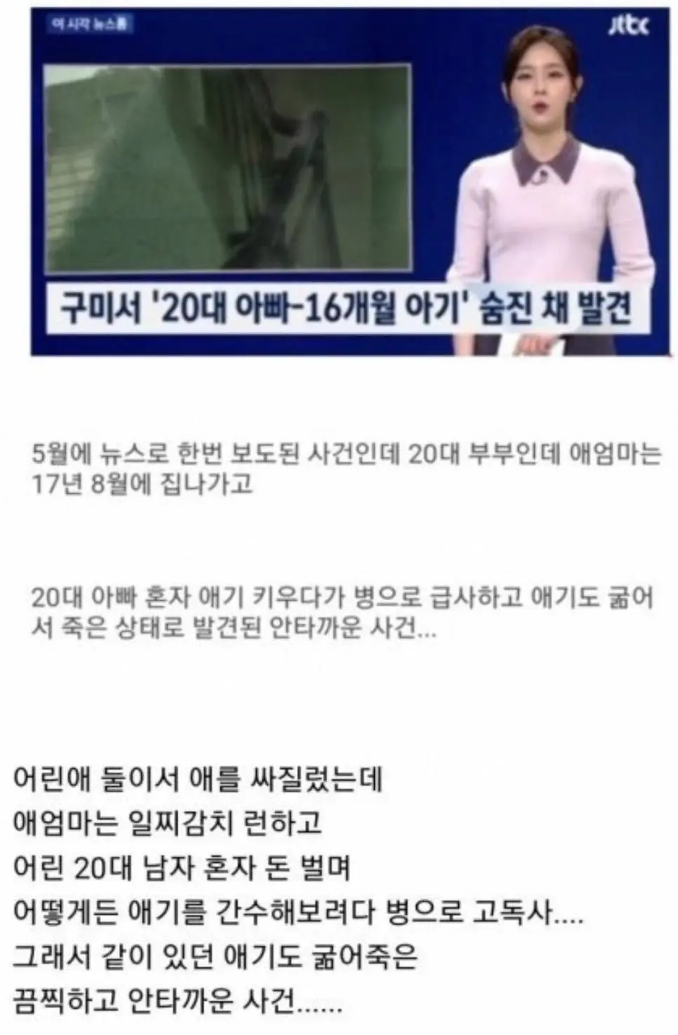 원룸서 애아빠와 16개월 아기 숨진채 발견