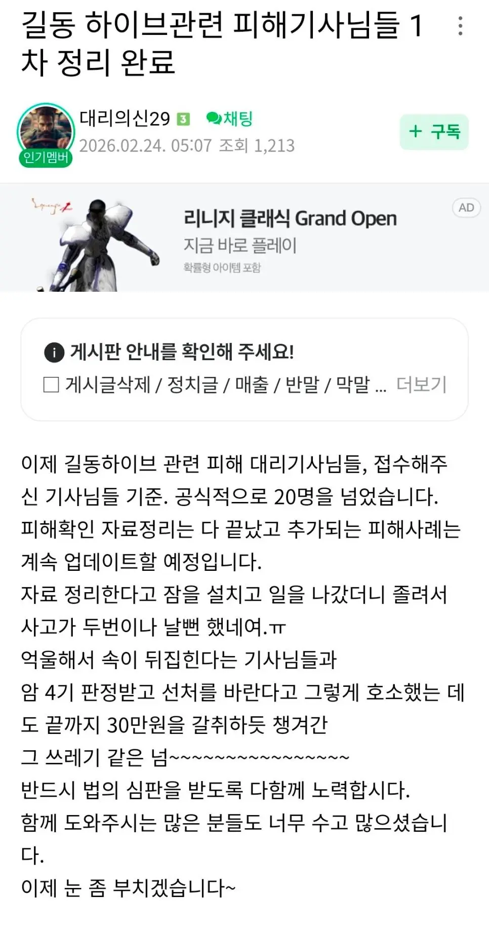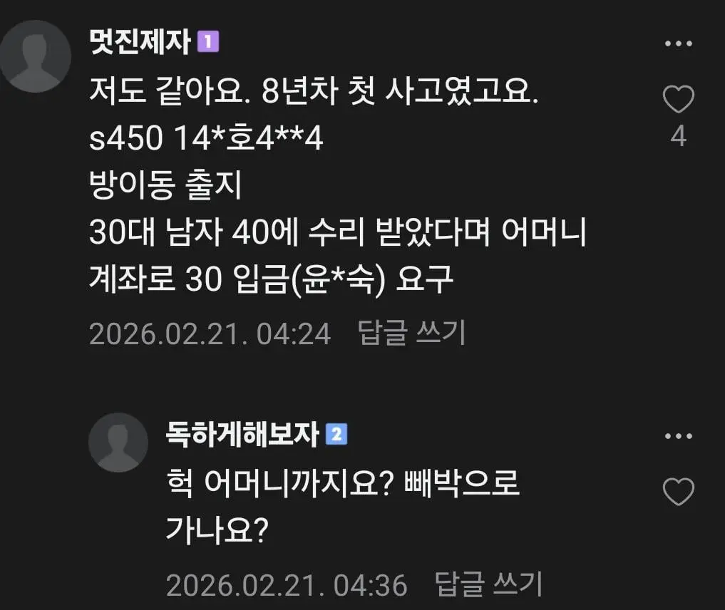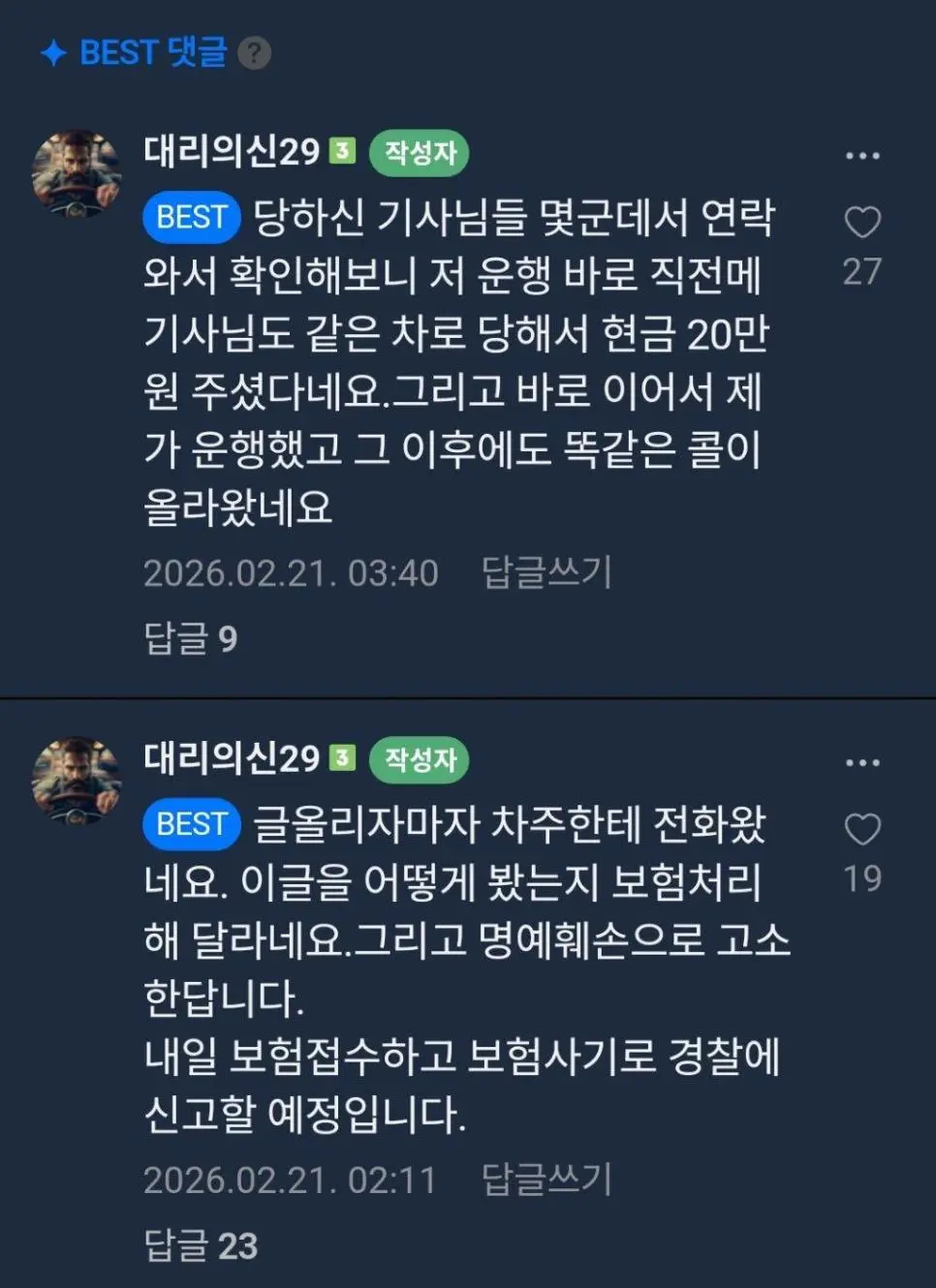 4. 대리기사 카페에만 피해자가 20명이 넘고, 경찰조사시 차주 및 차주 가족 통장 까봤을 때 피해자는 훨씬 많이 나올 수 있음.