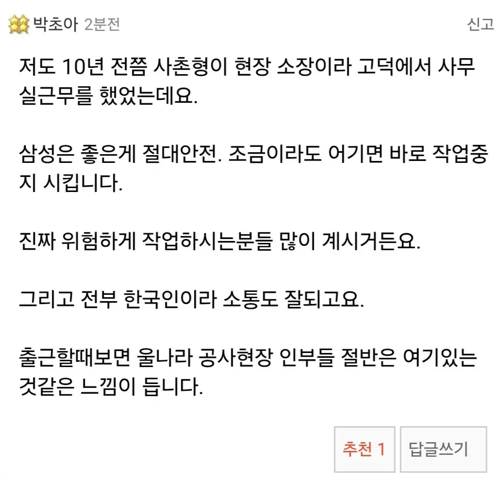 100% 한국인만 채용한다는 삼성전자 평택 건설현장 ㄷㄷ