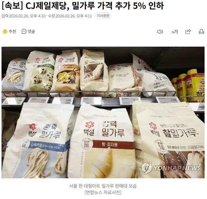 CJ제일제당, 밀가루 가격 추가 5% 인하