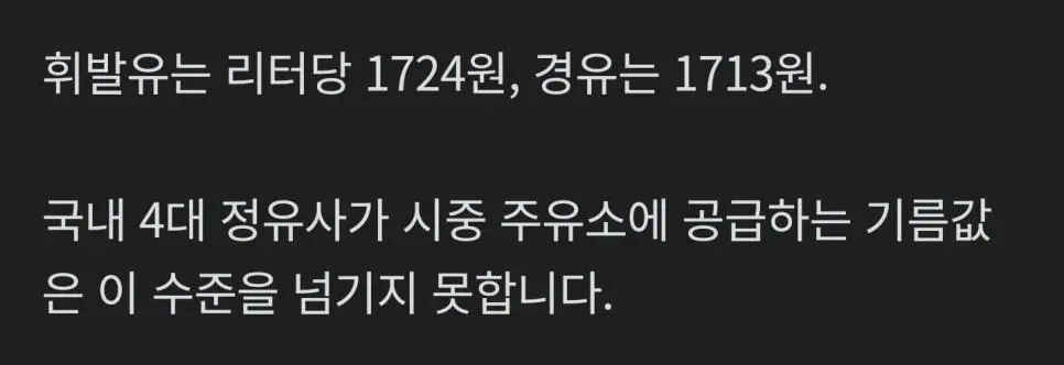 기름값 1,724원 못넘긴다... 최고가격제 실시