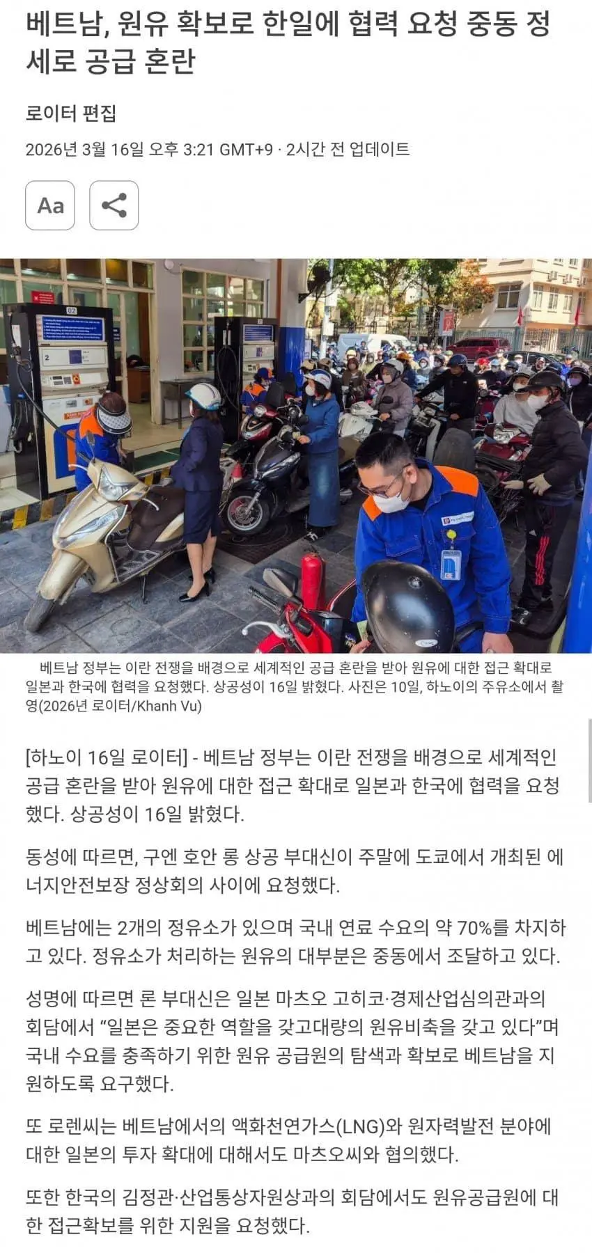 베트남, 한국에 석유좀 달라고 요청
