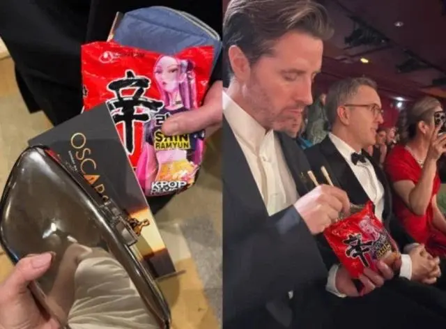오스카에서 케데헌 감독이 먹방 하는거 찍힘
