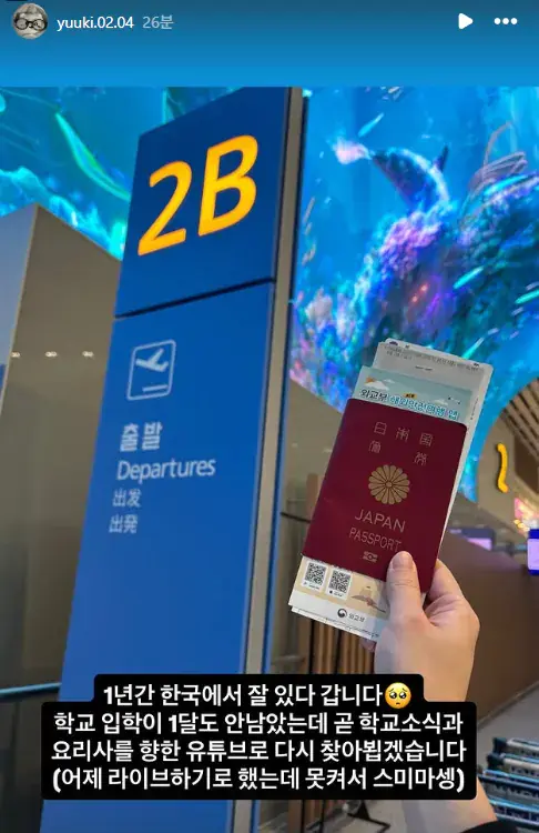 일본 요리학교 관련 유튜브로 복귀할 예정