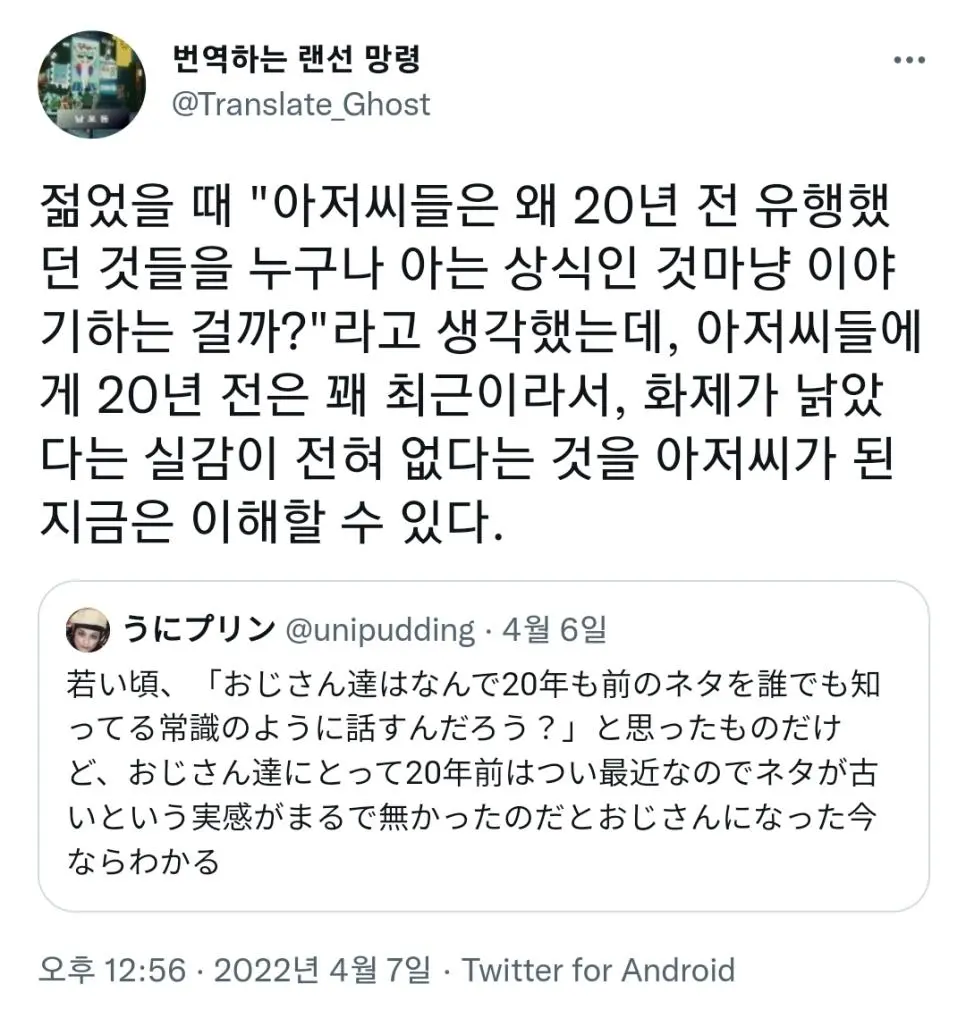 "아저씨들은 20년 전 유행을 당연한 상식처럼 이야기한다."