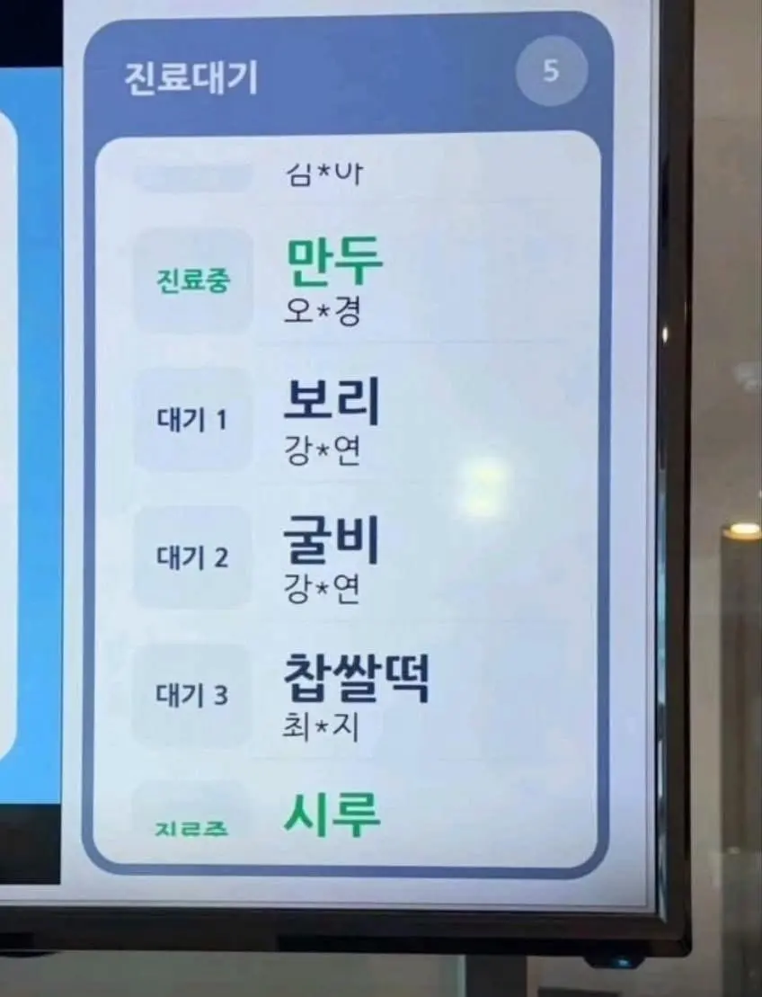 동물병원 진료대기중인 동물이름