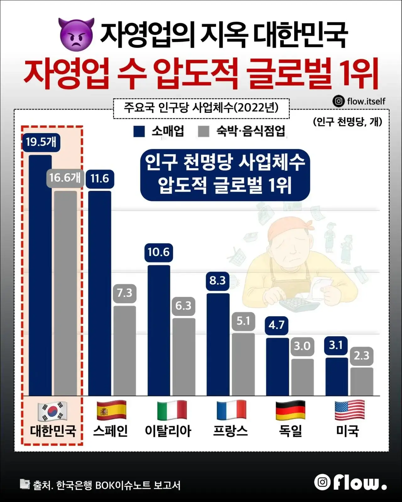 대한민국 자영업 수 압도적 글로벌 1위