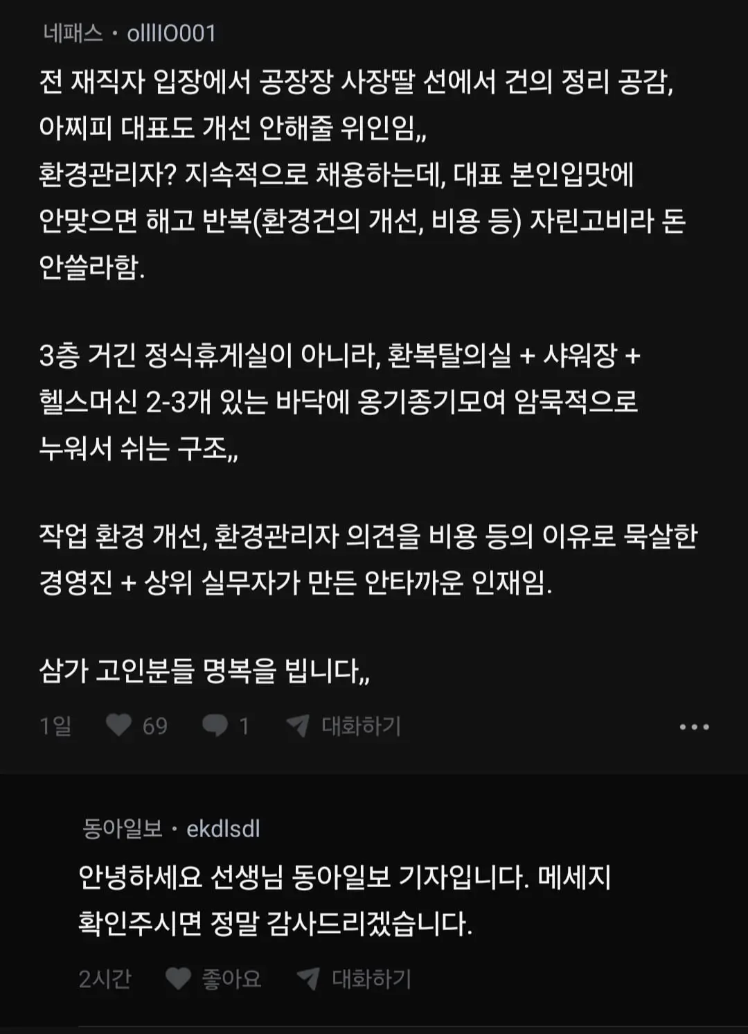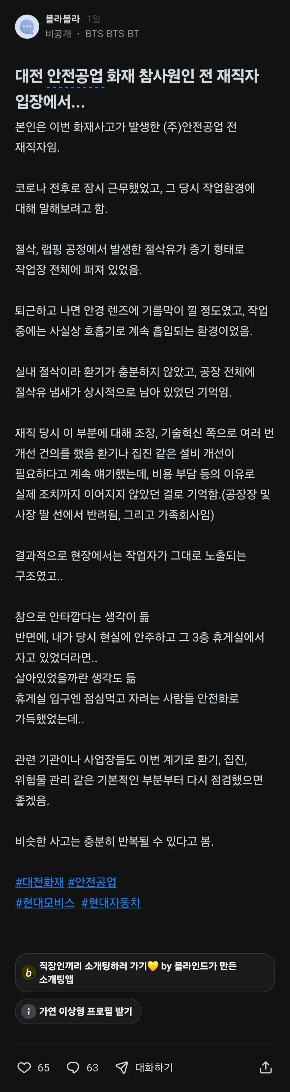 대전 안전공업 전 재직자가 말하는 작업 환경