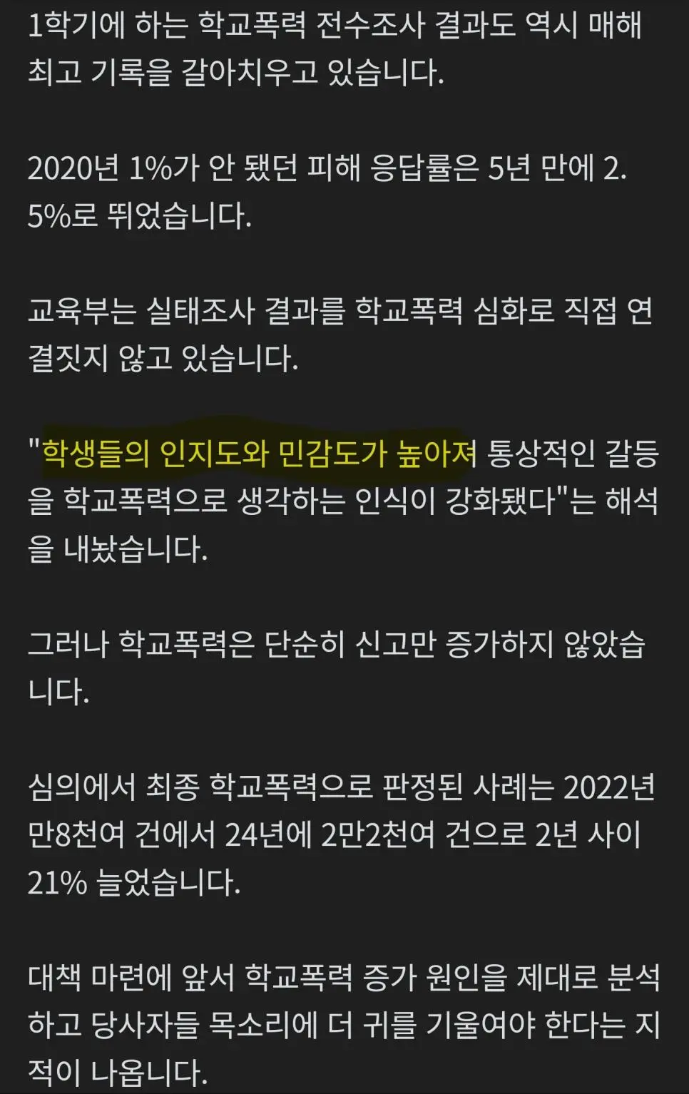 학폭 역대 최고치... 교육부 "민감해져서 그렇다"