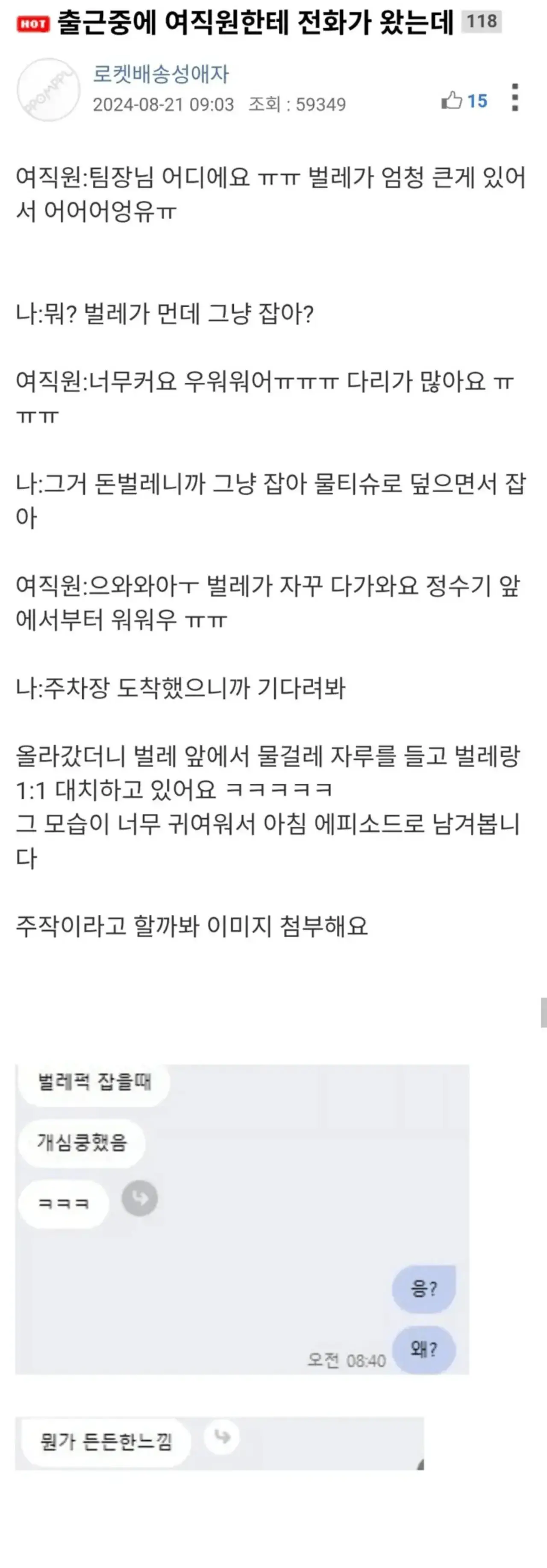 출근 중에 직원에게 문자 받은 팀장님