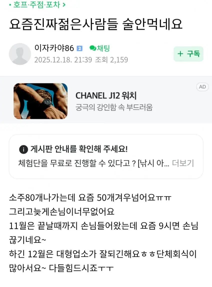 술이 아예 안 나가는 날도 많다는 대학가 술집 근황ㄷㄷ
